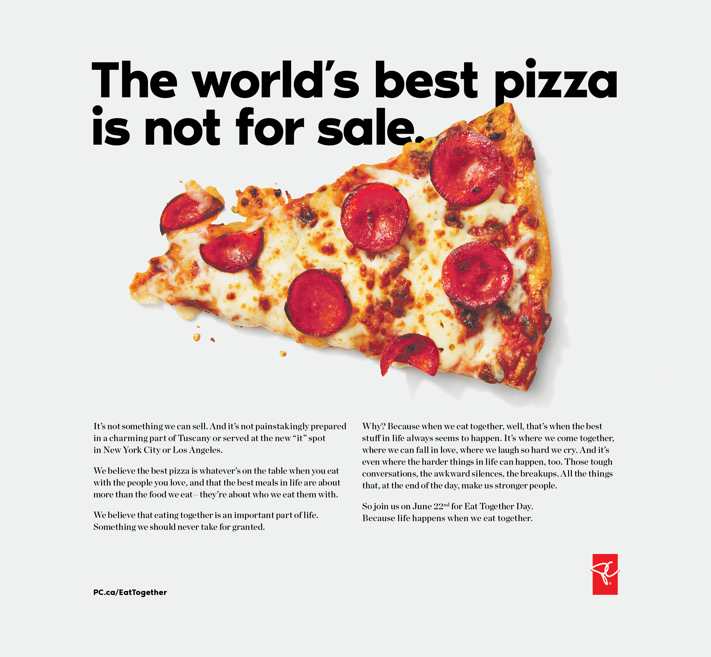 At the same time, eight Canadian filmmakers were asked to create their own films that explored the meaning of Eating Together from a variety of cultural and socio-economic perspectives. These films were distributed via social channels in the months leading up to Eat Together Day. In the month leading up to the Jun. 22, national full-page newspaper ads spoke to the importance of eating together, whether PC was at the table or not.