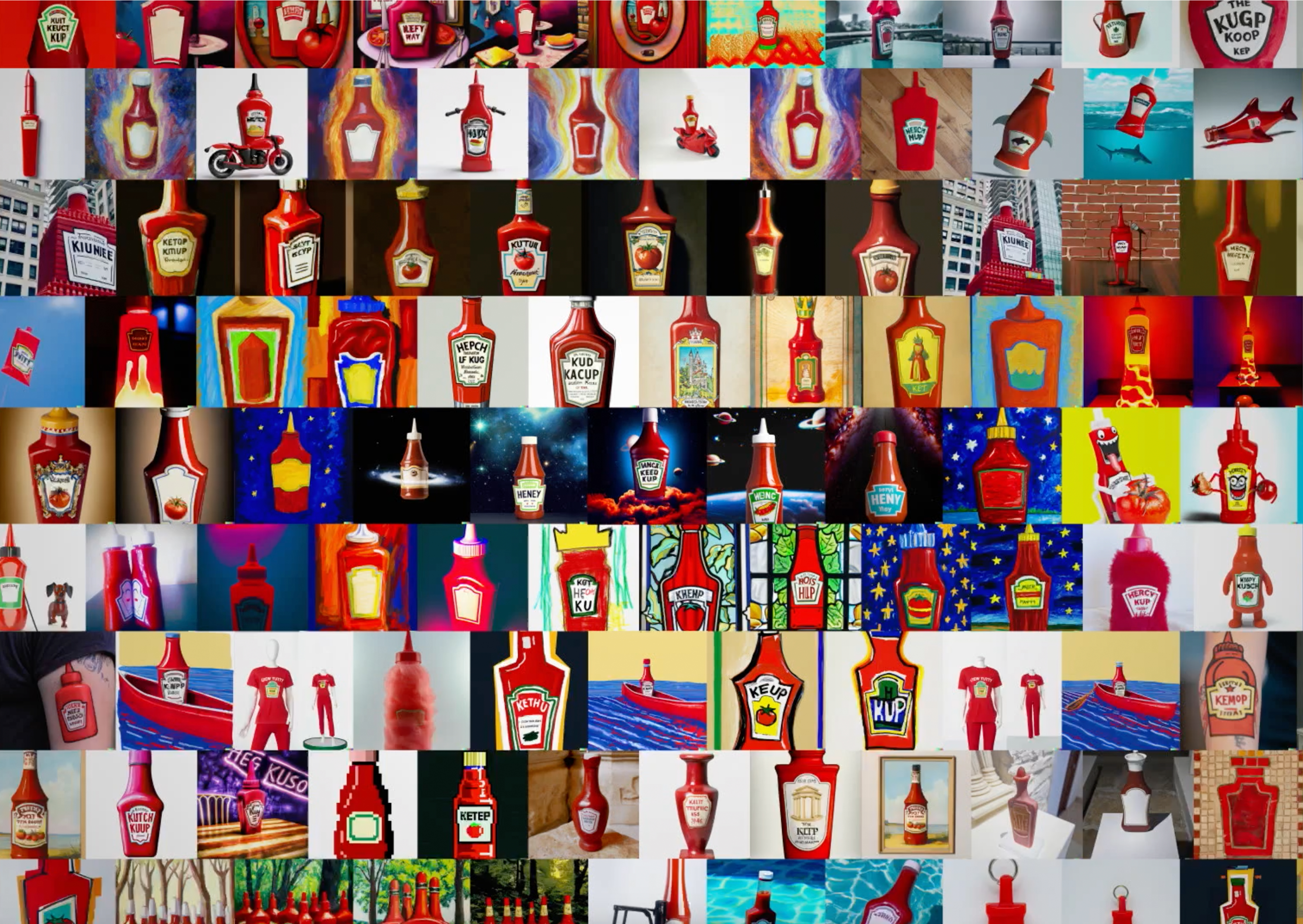 The result? Even to A.l., ketchup looks like Heinz. And as the prompts got weirder, from "Renaissance Ketchup Bottle" to "Ketchup Tarot Card", the A.l. still generated results that looked like Heinz.