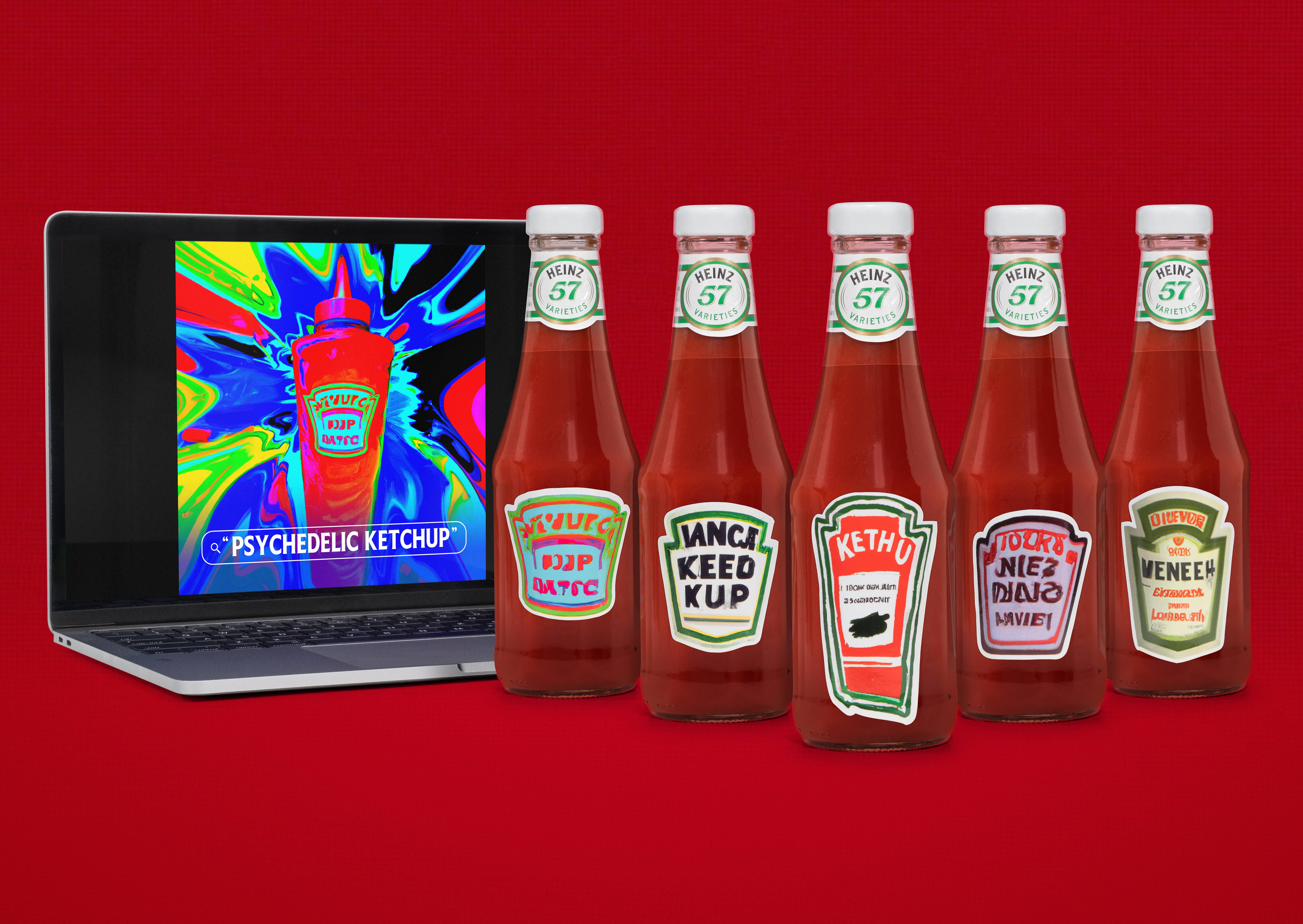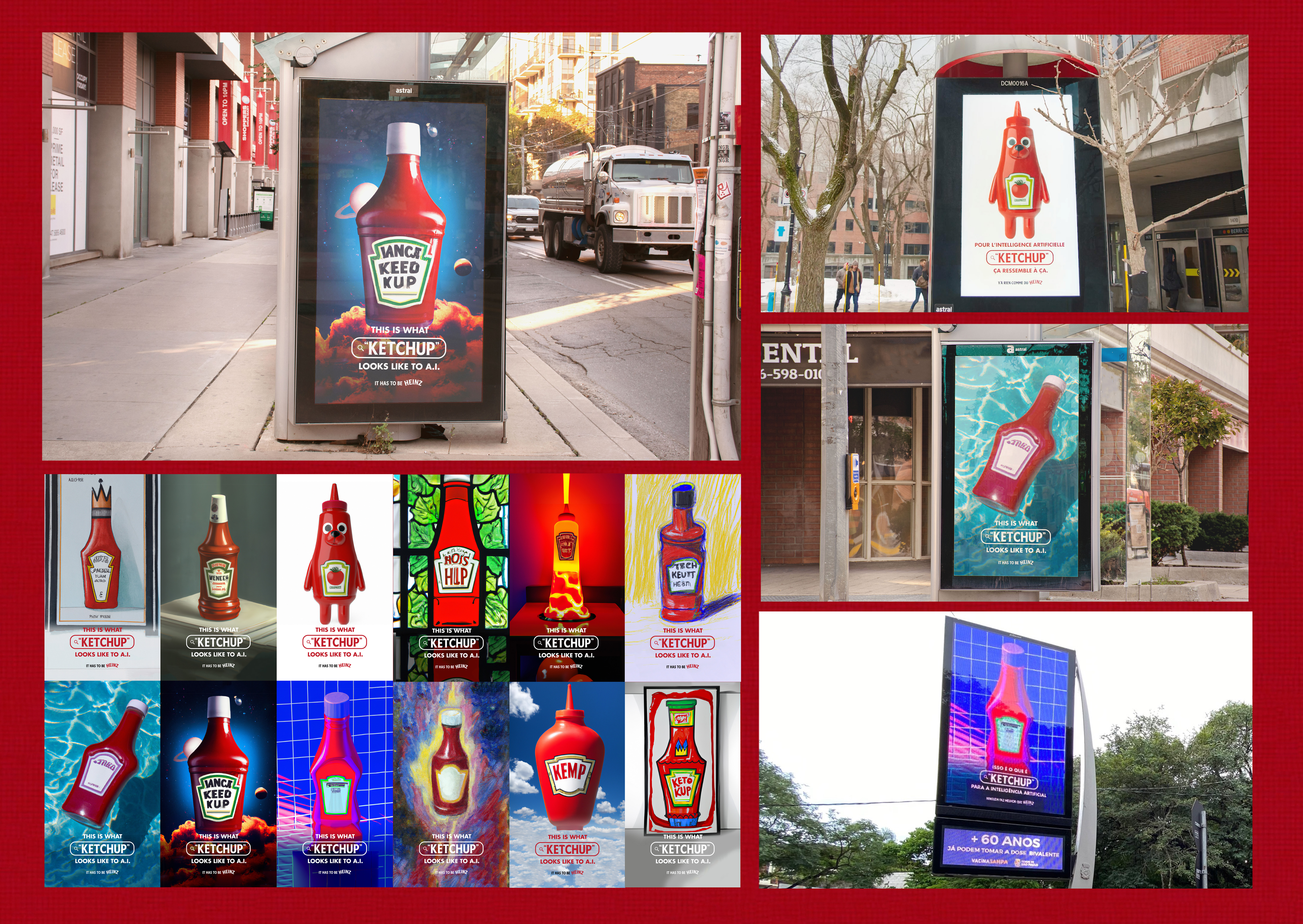 The agency also wanted to bring the campaign to life for their fans who contributed to their campaign with ketchup mashup image prompt requests. They created custom Heinz ketchup bottles that featured their image ideas and even hosted an IRL art gallery where A.I. and/or ketchup lovers were able to see the visuals in larger formats up close and personal.